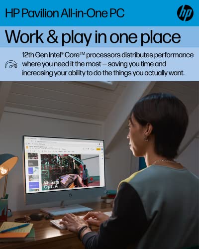 HP Pavilion 23.8 inch All-in-One Desktop PC, Intel Core i7-12700T Processor, Intel UHD Graphics 770, 16 GB Memory RAM, 1 TB 7200RPM SATA Hard Drive, Windows 11 Home (24-ca1180, Snowflake White)