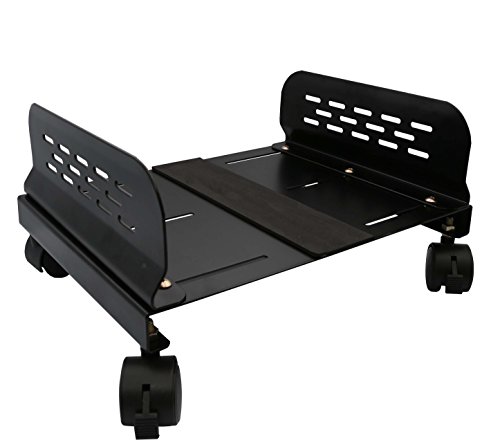 IO Crest Mobile Desktop Tower Computer Metal Floor Stand Rolling Caster Wheels with Tall Support Walls and Adjustable Width from 5" to 13"