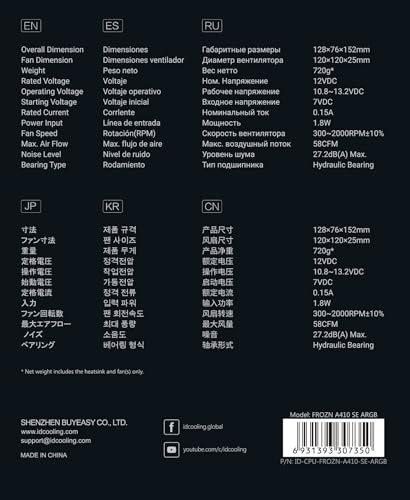 ID-COOLING FROZN A410 SE ARGB 152mm CPU Cooler with ARGB Lighting, 4×Ф6mm High-Performance Heatpipes, 120mm Quiet Fan Low Noise 27.2 dB(A), Intel LGA1851/1700/1200/1150/1151/1155; AMD AM5/AM4