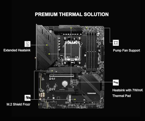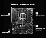 - Supports DDR5 Memory, up to 7600+(OC) MHz;/ Premium Thermal Solution: Extended Heatsink Design and M.2 Shield Frozr are built for high performance system and non-stop works;/ 2.5G LAN and AMD Wi-Fi 6E Solution: Upgraded network solution for professional and multimedia use. Delivers a secure, stable and fast network connection