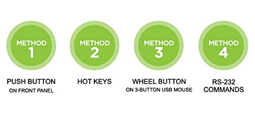 - Switch via pushbuttons, hotkeys, Mouse and RS-232 command control