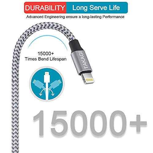 iPhone Charger, TAKAGI 3Pack 6FT Nylon Braided Lightning to USB Cable Power Fast Charging Data Sync Transfer Cord[Apple MFi Certified]Compatible with iPhone 12 11 Pro Max XS XR X 8 7 Plus 6S SE iPad