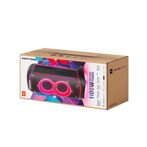 JBL Partybox Ultimate - Multi Purpose Party Speaker, with Wi-fi & Bluetooth Connectivity, Wireless, Lightshow, IPx4 Slashproof, Dual Mic & Guitar Inputs, Handle & Sturdy Wheels, Black