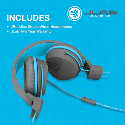 JLab JBuddies Studio Over-Ear Kids Wired Headphones | Toddler Headphones | Kid Safe | Studio Volume Safe | Volume Limiter | Folding | Adjustable | Noise Isolation | with Mic (Graphite/Blue)