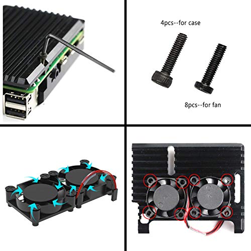 JUN-ELECTRON for Raspberry Pi 4 Model B Case, Dual Cooling Fan, Enclosure Aluminum Alloy Case with Heatsink Pillar