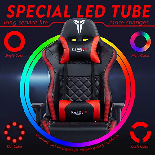 Kasorix RGB Armchair Breathable Leather Gaming Chair,Office Chair with Footrest, High Back Executive Chair, Height Adjustable Swivel Office Chair(Red-8526)