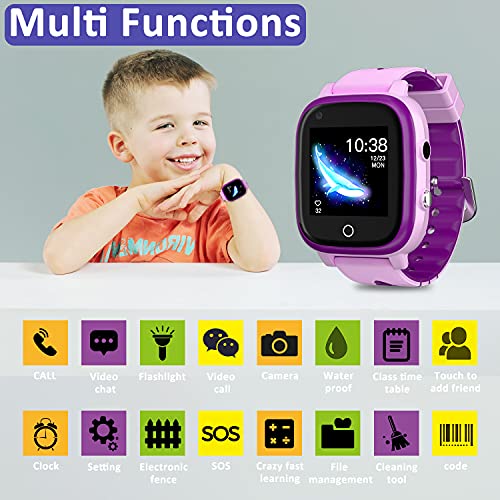 Kids Smart Watch for Boys Girls, Kids Smartwatch with Call Games Music Player Camera SOS Alarm Clock Calculator 12/24 hr Touch Screen Children Wrist Watch for Kids Age 3-12 Birthday Gifts (Purple)