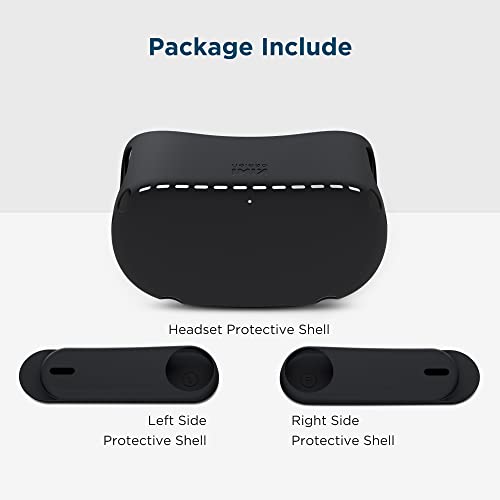 KIWI design VR Shell Protective Cover with Two Side Protective Sleeves, Compatible with Quest 2 Accessories (Silicone, Black)