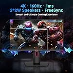 - [Visual Splendor in 4K UHD at 160Hz (Supports 144Hz)] Get ready for stunning 4K UHD resolution, boasting a fast 160Hz refresh rate (with 144Hz support) and 1ms MPRT response time. It's the ultimate performance boost for your gaming with this 27 gaming monitor.