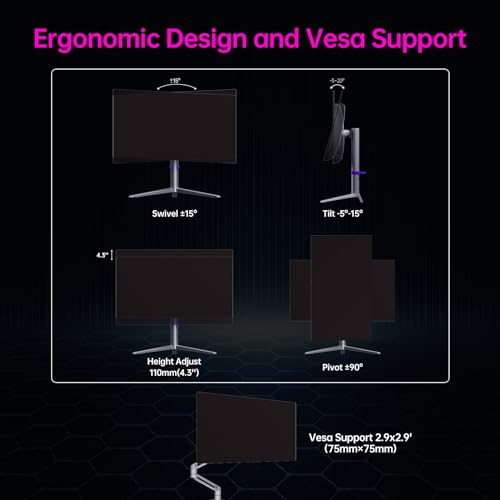 - [Endless Features]Explore KVM support, VESA 2.9x2.9''(75mm×75mm) compatibility, and 2×5W built-in speakers. Flicker Free and Low Blue Light enhance your cinematic experience, taking entertainment to new heights.
