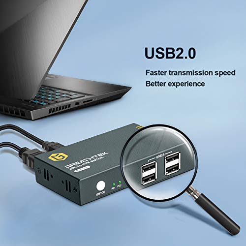 - 【ONE-KEY SWITCHING】Just need to lightly press the button on the panel to switch , which is convenient and quick. Our product easy to operate and install as well as no need driver when you use it. Also, this item no additional power required and it’s powered by the USB cable, please connect the USB cable between the computer and the KVM first.