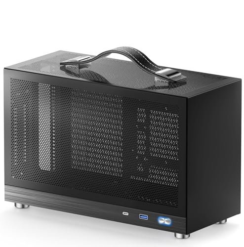 - [Ultra-Compact Design] Weighing only 2kg with a volume of 8.1L, this Mini-ITX case is incredibly portable for LAN parties and gaming on the go. | [Premium Aluminum Build] Crafted from pure aluminum for a sleek, durable, and high-quality finish that looks great on any desk. [Stylish Portability] A leather handle on the top adds a touch of style and makes transportation effortless.