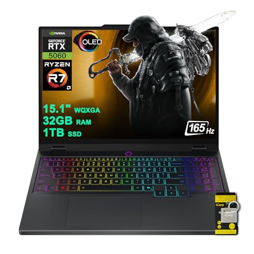 - 15.1" WQXGA (2560x1600) OLED 165Hz (100% DCI-P3, 1000nits HDR Peak), Dedicated NVIDIA GeForce RTX 5060 8GB Graphics