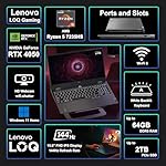 Lenovo LOQ Gaming Laptop 15.6" FHD IPS 144Hz (100% sRGB G-SYNC) AMD Quad-core Ryzen 5 7235HS 32GB RAM 1TB SSD GeForce RTX 4050 Backlit Nahimic Privacy Camera Rapid Charge Win11 w/ICP Hub