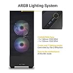 - Include 3 ARGB LED Lighting PWM Fans, two front 140mm fans and one rear 120mm fan. 7 color and 7 lighting modes are controlled by the C/M button on the top of the case. Sync to the motherboard at the 8th Mode