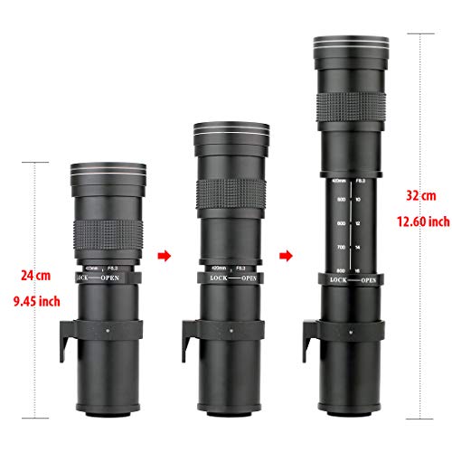 - 420-800mm f/8.3-16 Manual Telephoto Zoom Lens for Canon EOS Rebel T7, T7i, T6, T6i, T5, T5i, SL2, 80D, 77D, 700D, 70D, 60D, 50D, 5D, 6D, 7D, 600D, 550D, 200D, 150D, 100D, 1300D, 1400D, 1500D etc