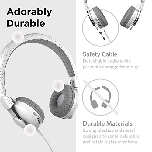 LilGadgets Untangled Pro Wireless Kids Heapdhones, On-Ear Toddler Headphones for Kids for School, Bluetooth Headphones with Microphone - White