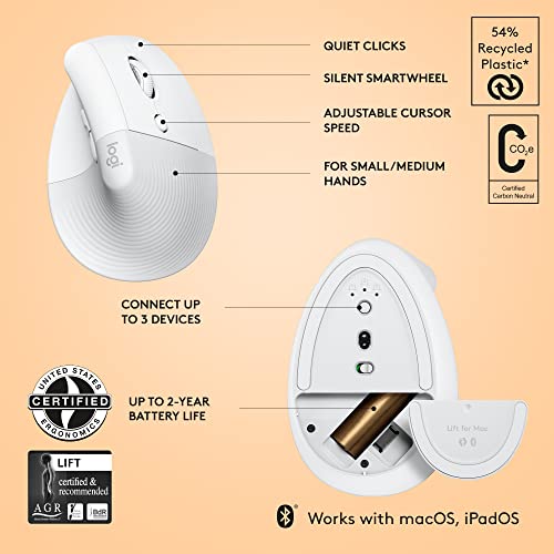 - Great for small to medium hands: The organic silhouette of Lift for Mac vertical ergonomic mouse fits small to medium hands like a glove for all-day comfort