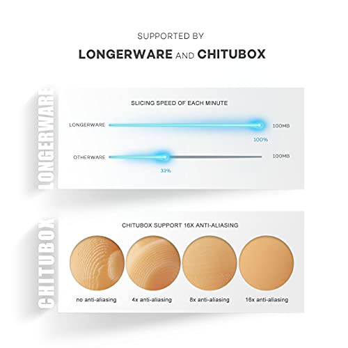 - 【Easy Operation & Fast Slicing】 Full color touch screen. Real-time printing status preview. Easy leveling. Upgraded trough with scale, more convenient. LONGER self-developed slicing software, output 100M slicing file in 1 minute, 3 times faster. Smart support generation in one-click. Also supported by CHITUBOX.