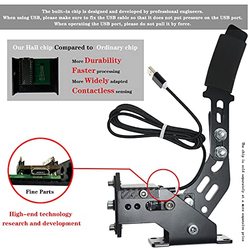 - 【Use】Plug and play, easy to use solution. Simply connect to USB, no driver installation required. 14-BIT HANDBRAKE -- 1:1 analogue handbrake design, lever height can be adjusted as required, non-contact plus Hall sensor, continuous operation without overheating. PC racing handbrake only supports PC windows system.