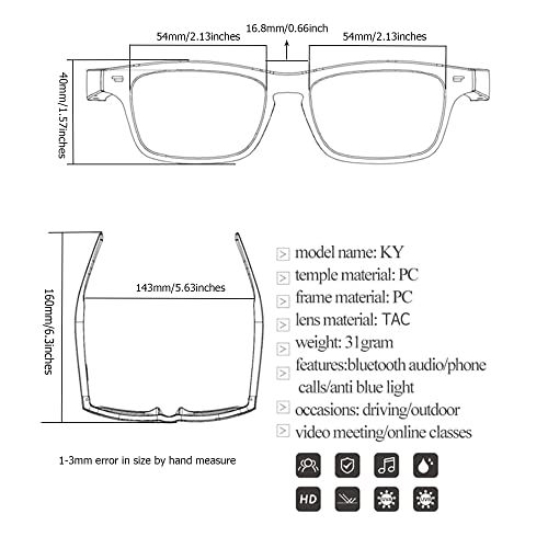 - 【Open Ear Audio Sunglasses】Smart sunglasses are the combination of smartphone, as headset and glasses support listen music or hands free calling.Open-ear audio allows would protect your ears than use wireless headphone.