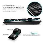- Latest Kailh Blue Switch -- Low Profile Switches, 11.5mm switch height, 6mm ultra-thin suspended keycap, 3mm key travel creates unique mechanical feel.