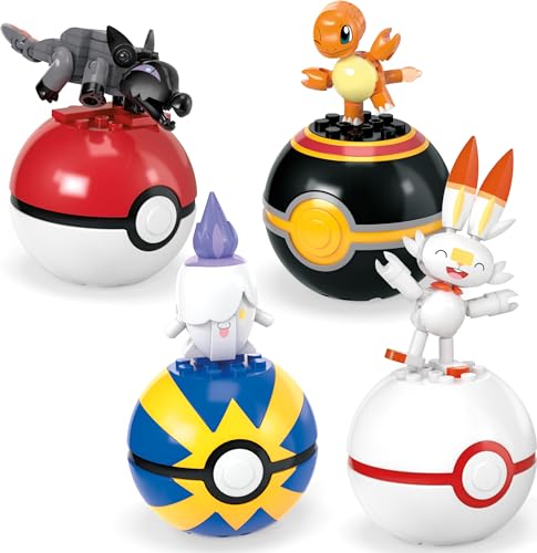 - Includes 4 buildable and poseable Fire-type Pokémon with 4 pronged Poké Balls