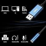 - Premium Materials: Built-in smart Chipset for high-speed audio signal decoding and offer a full and delicate tone, highly restored quality sound. Robust Sapphire Blue Metal Housing ensures a wear-resistant, anti-corrosion, solid protection, and charming out looking. This USB to audio jack adapter tightly combined 20 Strands of three Cores, enameled copper, soft and durable PVC covers. Its high-density shielding protection ensures high stability sound transmission and a soft touch.