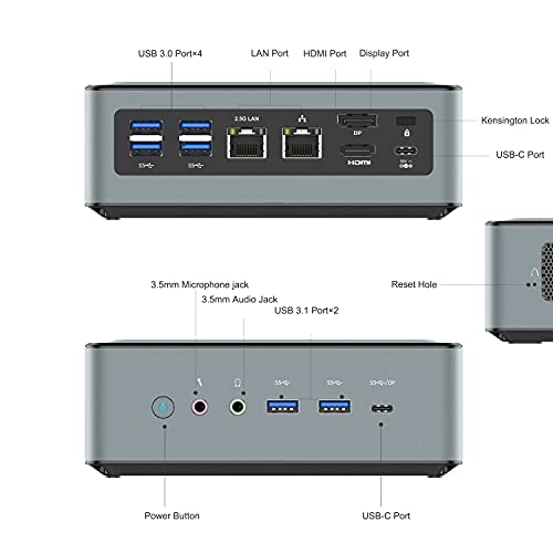 - 【Triple Display Output】: this Mini PC comes with Integrated AMD Radeon Graphics(graphics frequency 1500 MHz), 4K@60Hz triple display output via HDMI 2.0, DisplayPort and USB-C Port, you could connect three independent displays, which ensures smooth navigation, responsive work processes and comfortable handling of apps and files and expands multiple work-spaces for more efficient and comfortable productivity.