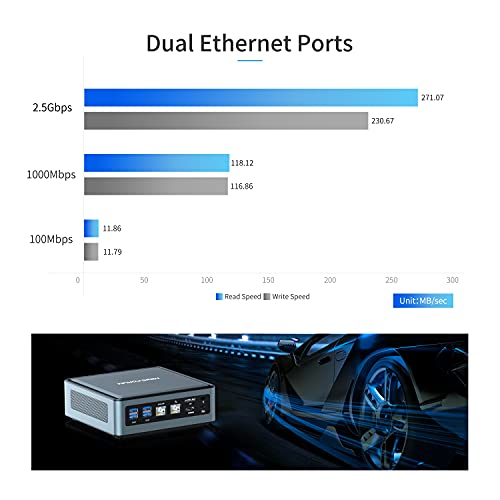 Mini PC AMD Ryzen 5 4500U Desktop Computer, DDR4 16G RAM+512G SSD, HDMI/DP/USB-C 4K@60Hz Output, 2X RJ45 Port(1000/2500Mbps), 6X USB Port, WIFI6 AX200, AMD Radeon Graphics, 2X HDD Slot