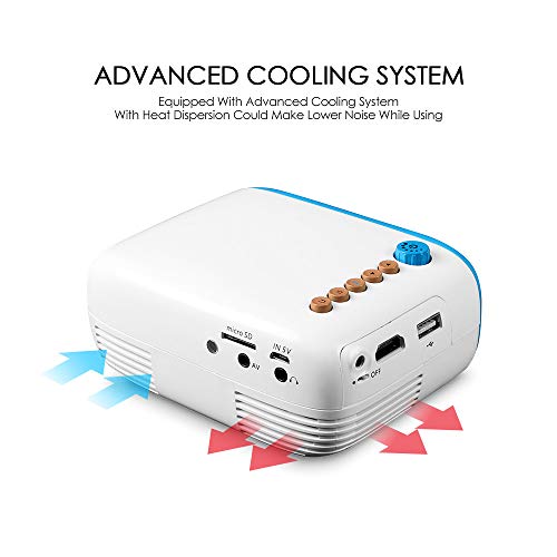 - [Easy Setup & Built-in Speaker] Just plug in & play. GooDee Mini movie projector is easy to use. Built-in powerful speaker can deliver a clear sound which will meet your daily needs, such as play movies and games also inspire children learning interest.