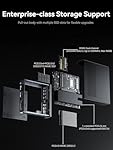 - 【Support Enterprise-class Storage】:MS-01 supports enterprise-class storage, and expands with up to three M.2 NVMe SSDs, with each slot supporting a maximum capacity of 2TB. The leftmost slot is PCIe 4.0 compatible, with a maximum transfer speed of 7000MB/s.It supports both RAID0 for increased capacity and RAID1 for enhanced data safety. Supports enterprise-class storage, allowing for expansion up to a total max storage of 24TB with a configuration of one U.2 NVMe SSD and two 22110 M.2 NVMe SSDs.MS-01 meets a wide range of capacity requirements.