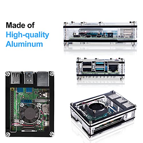 - Raspberry Pi 4 Case With Fan - new raspberry pi 4b case with a silence DC 5v cooling fan and 4 pcs aluminum heatsinks, double cooling system keep your raspberry pi 4 cooler quickly even the CPU under high load.