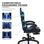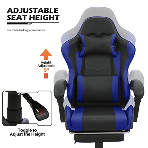 MoNiBloom Gaming Chair with Headrest & Lumbar Support Ergonomic Computer Racing Chair with Footrest, Adjustable Hight Leather Swivel Computer Chair for Adult Teen Office or Gaming, Blue
