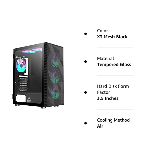 Select Variant: Montech X3 Mesh 6pcs, 3 x 140mm& 3 x 120mm Fixed RGB Lighting Fans ATX Mid-Tower PC Gaming Case, USB3.0, Door Open Tempered Glass Side Panel, High Airflow, Black