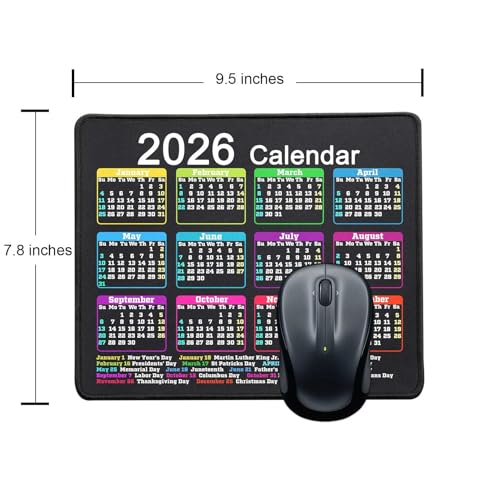 Mouse Pad with Non-Slip Rubber Base, Waterproof Computer Mousepad with Stitched Edges, Mouse Pads for Computers, Laptop, Gaming, Office & Home, 9.5 x 7.8 in (Black Calendar 2026)