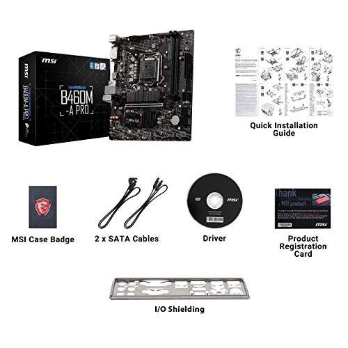 MSI B460M-A PRO ProSeries Motherboard (mATX, 10th Gen Intel Core, LGA 1200 Socket, DDR4, M.2 Slot, USB 3.2 Gen 1, 2.5G LAN, DVI/HDMI)