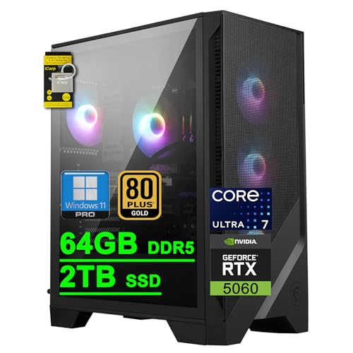 msi Codex R2 AI 2nd Gaming Desktop Intel 20-core Ultra 7 265 64GB DDR5 2TB SSD GeForce RTX 5060 DLSS4 (Up to 614 AI Tops) DisplayPort 5G Ethernet 80+ Gold PSU Wi-Fi6E Win11Pro ICP Hub