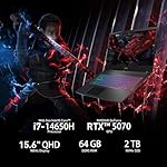 Select Variant: msi Katana HX Gaming Laptop, 15.6” 165Hz QHD IPS Display, 16-core i7-14650HX (UP to 5.2 GHz, GeForce RTX 5070, AI&VR Ready, Copilot+ PC, RGB Backlit Keyboard, Win 11 Pro, Black(64GB DDR5 | 2TB SSD)