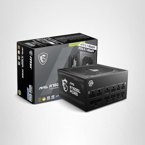 Select Variant: MSI MAG A750GL PCIE5, Fully Modular Compact Gaming 750W Power Supply, 80+ Gold, ATX 3.1 & PCIe 5.1 Ready, Native Dual-Color 12V-2x6 Cable, 10 Year Warranty
