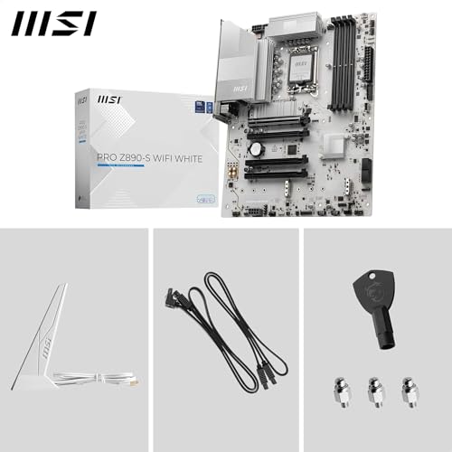 MSI PRO Z890-S WiFi White Motherboard, ATX - Supports Intel Core Ultra Processors (Series 2), LGA 1851 - DDR5 Memory Boost (8600+ MT/s OC), PCIe 5.0 x16 & 4.0 x16, M.2 Gen5, Wi-Fi 7, 2.5G LAN