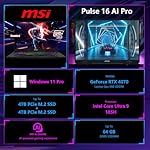 MSI Pulse 16 AI Pro Gaming Laptop, 16" WQXGA 2560 * 1600 240Hz, Intel Ultra 9 185H, NVIDIA GeForce RTX 4070, 64GB DDR5, 1TB SSD, RGB Backlit, Wi-Fi 6, Bundle wtih PCO Notebook Fold Radiator