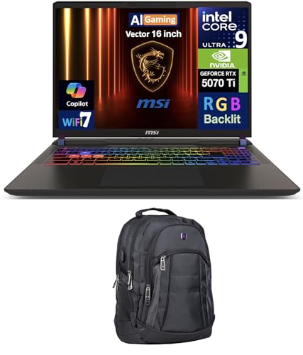 MSI Vector AI Gaming Laptop 16.0" 240Hz WQXGA Display (Intel Ultra 9-275HX, GeForce RTX 5070 Ti 12GB, 32GB DDR5, 8TB PCIe SSD, RGB KB, 2 Thunderbolt 4, WiFi 7, Win 11 Pro) w/Premium Backpack
