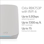 NETGEAR Orbi Whole Home Tri-Band Mesh WiFi 6 System (RBK753P) – Router with 2 Satellite Extenders - Coverage up to 7,500 sq. ft. - 75 Devices - AX5200 802.11ax (Up to 5.2Gbps)
