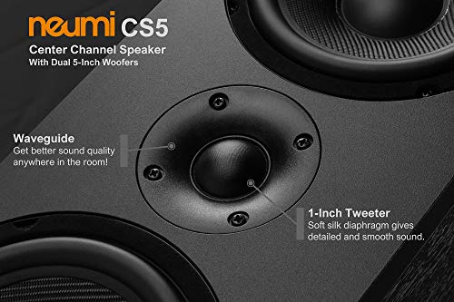 NEUMI CS5 Center Channel Speaker, Dual 5-Inch Woofers, 1-Inch Tweeter, Dark Wood, Single
