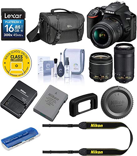 Nikon D3500 24MP DSLR Camera with AF-P DX NIKKOR 18-55mm f/3.5-5.6G VR Lens and AF-P DX NIKKOR 70-300mm f/4.5-6.3G ED Lens - Bundle with Camera Case, 16GB SDHC Card, Cleaning Kit, Card Reader