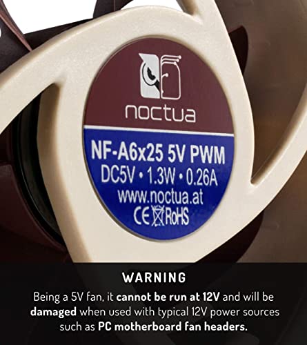 Noctua NF-A6x25 5V PWM, Premium Quiet Fan, 4-Pin, 5V Version (60mm, Brown)