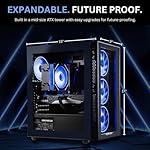 - ELEVATE YOUR GAMING AMBIANCE: Encased in a high-quality PC tower with captivating styling and vibrant RGB fans, this prebuilt gaming PC not only delivers superior performance but also adds a touch of elegance to your gaming setup.