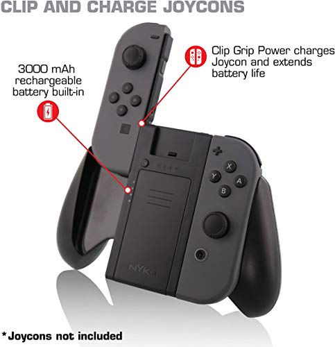 Nyko Clip Grip Power - Joy-Con Grip with Cell Phone Mount, rechargeable battery pack, game storage and SD Card holder for Nintendo Switch