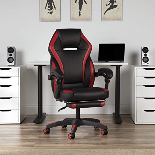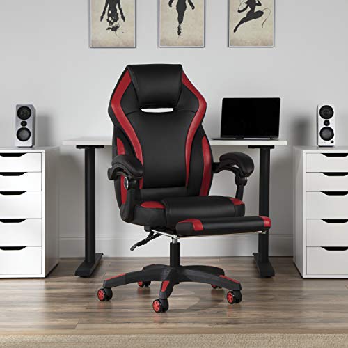 OFM ESS Collection Reclining Gaming Chair with Footrest, Bonded Leather, Red